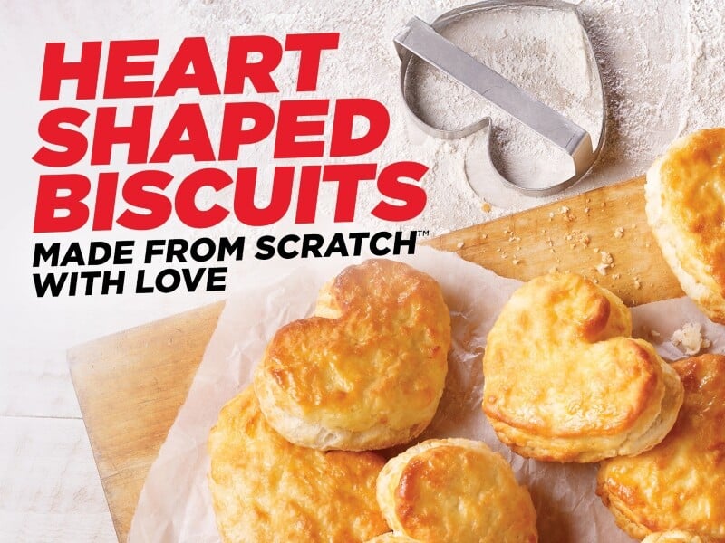 Love takes shape now through Feb. 15 with Hardee’s signature heart-shaped Made from Scratch™ biscuits. Every morning at 4 a.m., Hardee’s biscuit bakers arrive to bake masterpieces by hand, forming each one with the care and craftsmanship that defines the brand. This Valentine’s season, guests can enjoy all Made from Scratch biscuits and breakfast sandwich offerings in the festive heart shape for a limited time at participating Hardee’s locations.