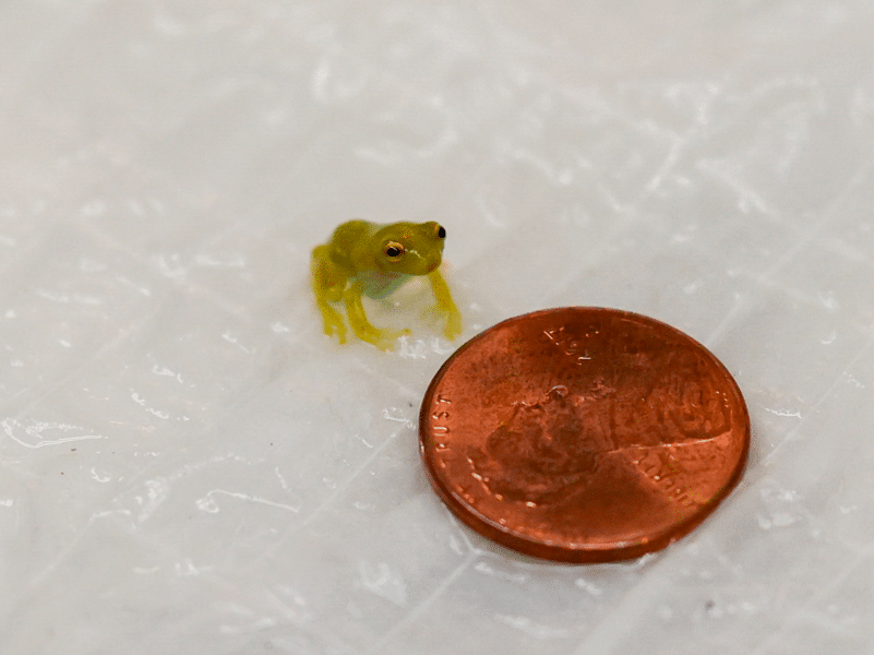 Visitors can see the adult frogs now on display inside the Unseen New World exhibit.